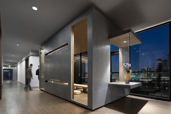 The office space of Elephant-Parade not only reflects the characteristics of the industry, but also fully expresses its cultural and aesthetic values. While small spaces have a certain sense of privacy, they communicate with the big space. Thus group and individual spaces exist harmoniously and get their functions performed. This is also the relationship between big and small blocks.