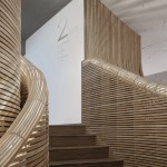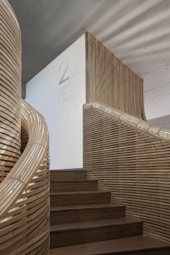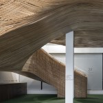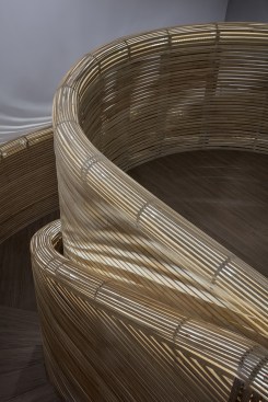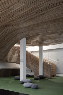 Bamboo as a building material represents the connotation of ancient Asian architecture system. Its output in China is enough to support the material consumption, and has the characteristics of high toughness and high plasticity. At the top of the stairs, while using bamboo, we made it curve. Architect Gaudy once said: "the straight line belongs to men, and the curve to god". Obviously, the curve, which conveys something beyond the building, is what really makes our heart relax and feel like walking in a distant daydream. So we make curve splicing in the stairs and the top of the first layer to extend the flowing of the space.