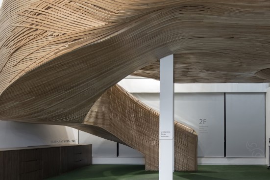 In our opinion, the process of designing is not only simply doing but also beautifying life. With time goes on, people began to be weary of the "forest" of reinforced concrete and the string light mirror glass, and the more they pursuit of is materials that are close to life. Hence we used bamboo elements in Elephant-Parade’s office and restored its color. Art must come from the nature, since it has already created the most unique beautiful models for people.
