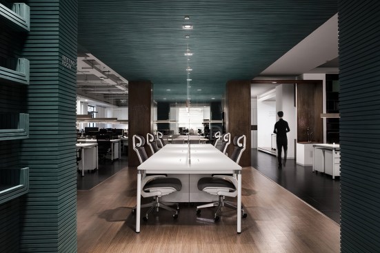 Floor and ceiling of each block has hidden lights, so even in the evening independent space could be formed. Simple and beautiful, clear and dazed multidimensional design language – digestion and refactoring constructs creative visual space in the structure of the multivariate composite.
