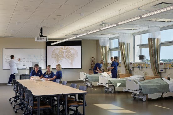 Elgin Community College’s leadership understood that in order to prepare exceptional professionals, they needed to provide excellent training in an inspirational setting. Kahler Slater led the programing and design for their new state-of-the-art Health and Life Sciences Building. The goal was to create an educational center to address the shortage of allied health professionals in a facility which would offer real-world, hands-on, experiential learning opportunities for students in nursing, radiology, dental assistance, histology, surg. tech., massage and physical therapies, as well as classrooms for the core academic coursework. Kahler Slater served as design architect and teamed with Kluber Architects + Engineers who served as architect and engineer of record. Together, our team provided an award-winning solution.