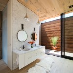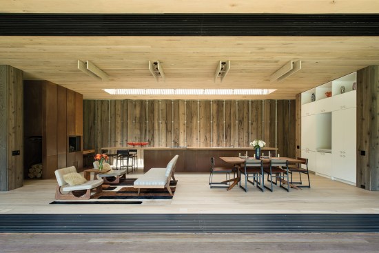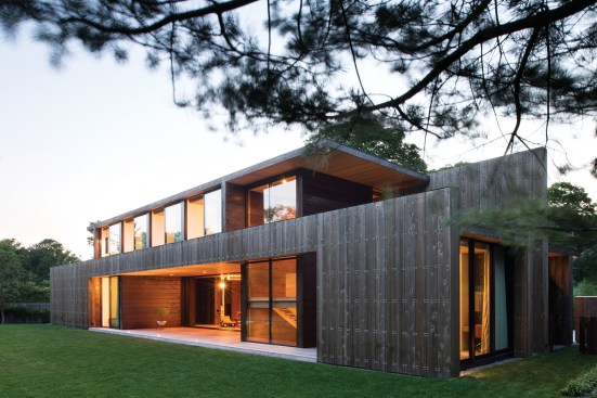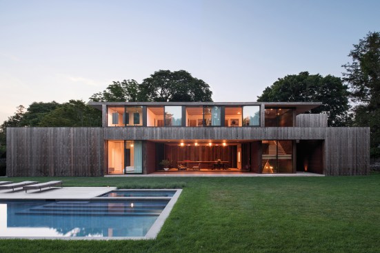 Acoustic considerations, more than visual ones, drove the design of this house in Amagansett, a resort town in the Hamptons. What began as an effort to block out unwanted noise progressed to a rich exploration of space and sound within the five-bedroom, 3,200-square-foot residence by Sag Harbor, N.Y.–based Bates Masi + Architects. Its mass rests on a series of parallel, 20-inch-thick walls that provide excellent thermal as well as acoustic insulation. Extending beyond the living spaces and ascending in height toward the heart of the house, these walls diffract sound waves to keep gathering spaces quiet. The architects created features that acoustically “tune” parts of the house—an adjustable sound baffle in the living area as well as stair treads of varying thicknesses that change the pitch of footfalls as one climbs up or down. But there is plenty in the house to reward the eyes, too, such as the wide-board cedar siding used inside and out, which is affixed with custom steel clips that double as cabinet pulls and robe hooks. —Amanda Kolson Hurley