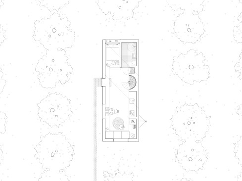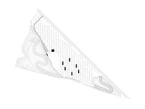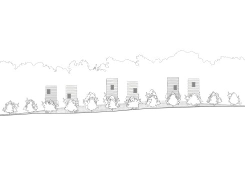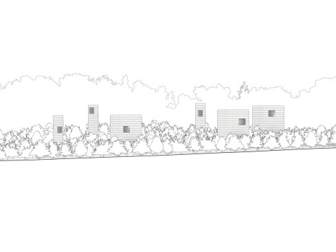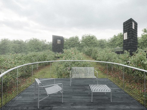 The solution is an exercise in rural urbanism—each of the structures is quite close to its neighbors, with privacy protected by diverting views rather than increasing distance. The three levels of each building allow visitors to experience the distinct vertical spatial qualities of the apple orchard—open at the ground, within the treetops at the roof terrace, and open to expansive views above the trees at the perch. The designers note a desire to project an “atmosphere of pensiveness.” Through exact and thoughtful architectural gestures and spatial ingenuity, Elsewhere Hudson Valley promises to deliver such a place.