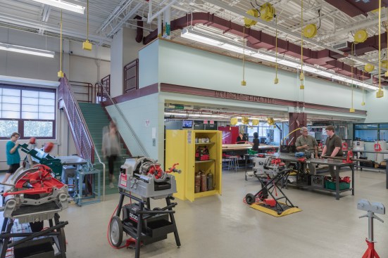The Emmett O’Brien Vocational Technical School project added 55,000 SF of new space and 120,000 SF of renovations to the existing facility. The renovated school, which houses 574 students in grades 9-12, features a new academic wing and cafeteria with state-of-the-art kitchen for the culinary arts programs, one of the school’s 11 trade programs. All the shops, from drafting and engineering to hairdressing and cosmetology, received major improvements, providing students with the skills they need to enter the workforce. The school’s exterior was also given a contemporary facelift with sleek steel components and curved lines.