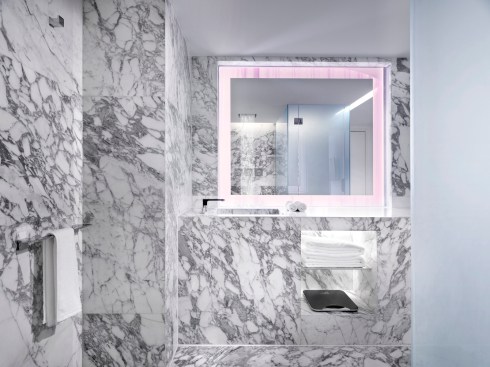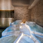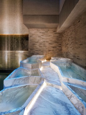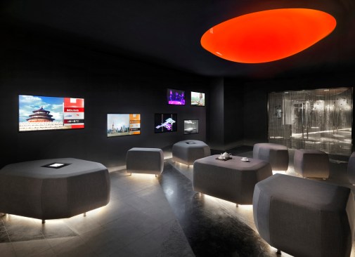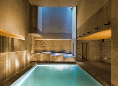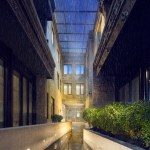 The design is infused throughout with water; from the pool cantilevered above the rooftop, it flows out and rains down, cascading through the hotel in a series of interior channels; dripping down threads from which hang floating plants; drizzling in a 15m interior rainfall and eventually plummeting down to an underground waterfall in the heart of a hidden spa. The water features offers new ways to experience Beijing: twice a day, guests are greeted in the reception with an interior rainfall, undoubtedly the world’s only raining hotel, but more importantly a rare moment of rain in a city otherwise on the edge of the desert. Likewise on the roof, in one of the few rooftop pools in Beijing, guests can not only swim above the roofs of the historic Qianmen district, with the ancient city gate looking in the background, but can actually view the gate underwater through the pool’s glass edges. The spa offers the impression of a space deep below Beijing, connected to this ancient city’s distant past, but yet with sunlight filtering down from above.