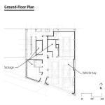For the new Bronx location, the designers and assorted governmental stakeholders were charged with stuffing these complex functions into a very tight envelope. EMS 27 occupies a footprint of less than 3,000 square feet and is wedged between an auto shop and a dusty scrap lot. Like the nearly century-old fire station it replaces, the new building runs through the narrow block from front to back, facing onto a high-traffic corridor on one side, and a quiet residential stretch of Woodlawn on the other.