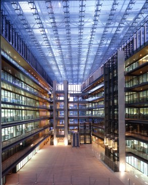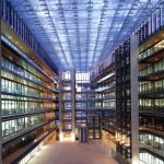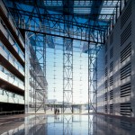 The design transforms the Spanish building tradition of large, internal courtyards into a modern, climate-controlled solution for Madrid’s harsh winters. A 33,000 square foot atrium plays a central role, acting as the “lungs” of the building. Through an innovative design and operable windows, the building is ventilated naturally, requiring no conventional air-conditioning.
