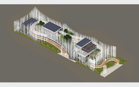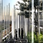 In designing the ENEL Pavilion for Expo 2015, Piuarch wanted to express the concept of “energy sharing” in an architectural theme. Not through a “building-container,” but rather with the creation of a virtual volume: a place, generated by a grid onto which 650 polycarbonate vectors are grafted. The arrangement of these constantly changing, illuminated vertical elements defines the volume that encompasses within itself a series of other volumes and green courtyards.
