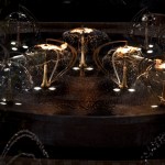 At times Flutter blooms with fire, providing a new dimension to its graceful nature. Its delicate water canopies hold flames captive, and along with Transcend’s choreographed surges of water and fire, infuse a warm energy throughout City Creek Center.