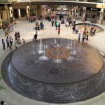 Nearby, Transcend offers a true dichotomy of hot and cold. Imagine snowflakes falling in the middle of winter, yet people flank the edges of Transcend to warm their hands by the shooting sprays, water that radiates heat as the water itself is “on fire.” Transcend invites outdoor visitors to enjoy this musical feature even during frigid Salt Lake winters.
