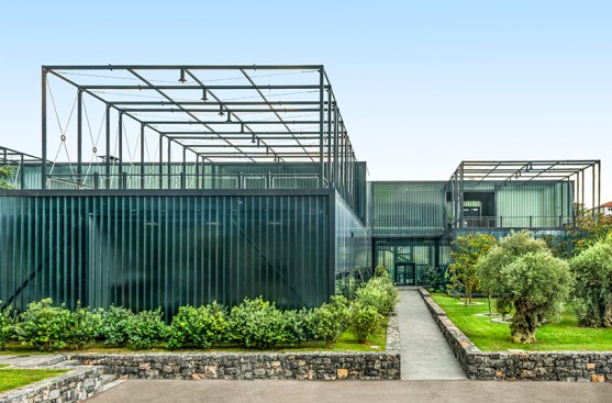 This orientation of an architecture that priorities workplace well being and environmental concerns is derived from a thoroughly modernist steel and glass structures and then optimised for the natural topography of the site and interior plan. The two-storey building consists of a series of staggered glass boxes organised inside the dramatically visible steel structure. These glass boxes are inserted into the exposed structure of arches, braces and trusses around a series of courtyards. 3 different types of glass, opaque and transparent tempered glass and translucent channel glass are used to mediate sunlight based on functions. Located in a active seismic area the resulting structure also had to accommodate strict building regulations. The architecture for ENKA Station in this way realises a performative, steel architecture yet in a original and elegant way not commonly found in buildings for infrastructure. The rural location and technical needs are also subtly balanced to give symbolic weight to an architecture where perforamnce on many levels is achieved.