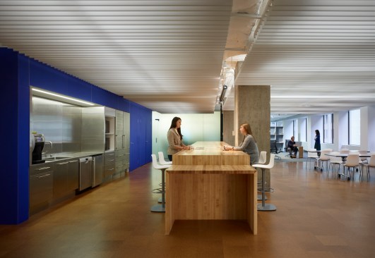 On the south side of the floor is a large, open kitchen, dining and seating area that provides a space for physical nourishment and offers areas for friendly conversations and impromptu meetings. The design successfully weaves together function and aesthetics, exceeding the client’s expectations and leaving a strong and positive impression on employees and visitors.