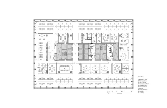 Located on eight floors of a modernist tower in downtown Chicago, Enova – an innovator in online financial services – is one of numerous technology companies to have established itself as part of Chicago’s new tech hub. Understanding that the growth of this hub would bring increased competition for the best programmers and designers, and inspired by Brininstool + Lynch’s design for Basecamp – a web-based software company located in Chicago – Enova hired the firm to design a new working environment to house the company’s technology department.