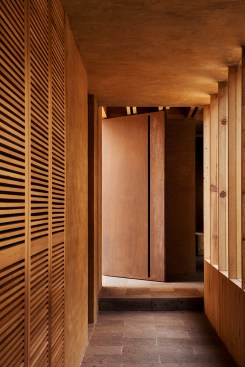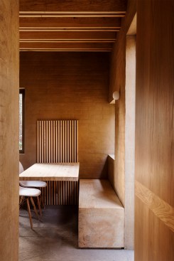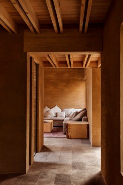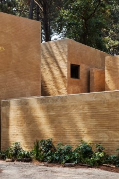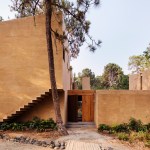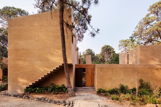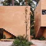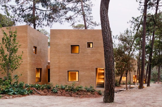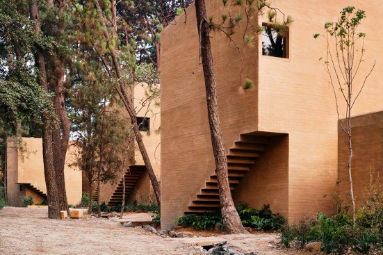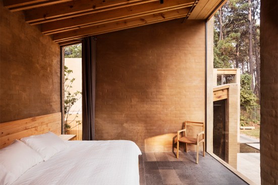 Although Barroso says that they “built around the existing trees whenever possible,” several trees were removed for the project. The wood from those trees, as well as from fallen trees on the site, became tables, benches, and built-ins. Of a piece with Luis Barragán and Louis Kahn, the poetic approach to the composition of space and materials produces a five-house complex deeply rooted in this “particular place.”