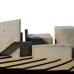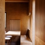 The structure is simple: Exposed pine floors and ceiling joists are supported on masonry bearing walls, with supplemental concrete for reinforcement and the cantilevers. The houses are laid out on a 30-centimeter (approximately 12-inch) module, based on the thickness of the masonry walls.