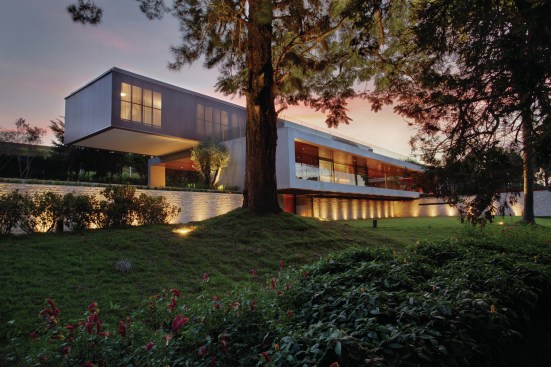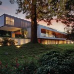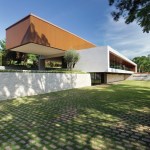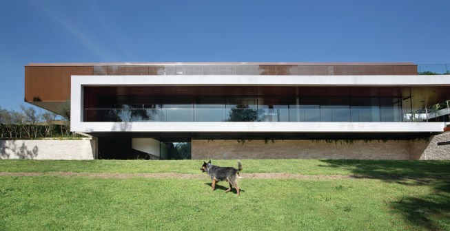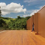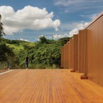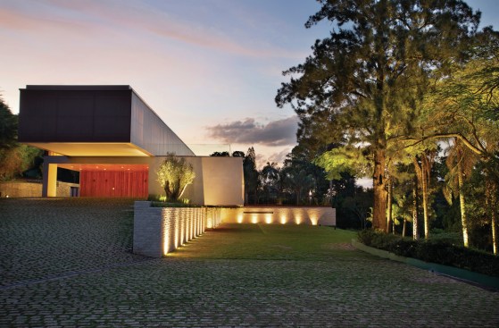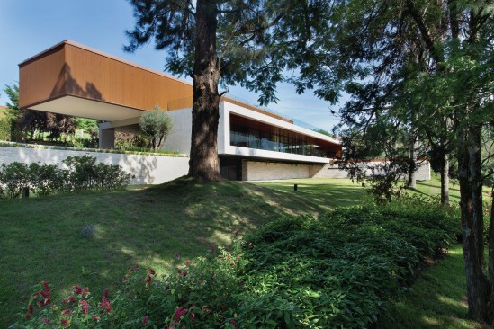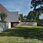 The straight lines of the architecture stay in constant contrast to the organic and fluid vegetation. With a simple, yet ellegant, visual solution the house is organized in two large block. The ground one is formed by an imposing concrete structure that frames and supports the upper block, which is completely built in metallic structure, bringing lightness and balance to the house.