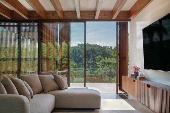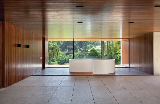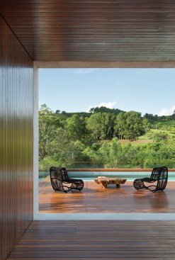 The highlight of the EP House is the well-defined and balanced use of geometric forms. The wide spaces are visually connected and they are all opened to the exuberant nature of its surroundings. Built to be a family weekend house, it provides a privileged view of a dense forest and a large lake.