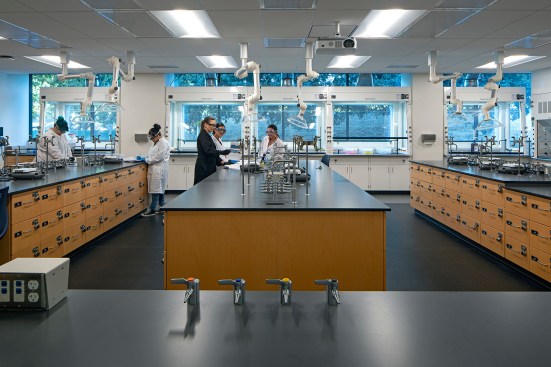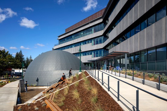 The new five-story, 96,631-square-foot $91 million Ernest E. Tschannen Science Complex at California State University, Sacramento (Sac State), designed by Los Angeles-based CO Architects, is a state-of-the-art, energy-efficient, light-filled science facility. Set on the banks of the American River, the facility provides faculty and students of Sac State’s College of Natural Sciences and Mathematics with indoor and outdoor collaboration spaces and terraces, 20 classroom labs, 10 research labs, one hybrid lab, two learning studios, one seminar room, a rooftop observatory, and a 120-seat planetarium that is also open to the community. The new complex defines an underused edge of the campus within the university’s science and engineering precinct, and gives a welcoming first impression to visitors and the local community. The facility is the university’s first new academic building in nearly 15 years.