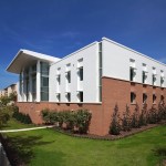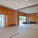 This LEED Gold Certified building includes many sustainable features, including fritted glass and sunshades to reduce solar heat gain while allowing views from all occupied spaces. All of the stormwater that falls on the site runs through a filtering manhole to reduce contaminates before leaving the site, and a white roof reflects the heat from the sun. Fire department access is gained through a reinforced turf, which allows the site to remain 90% pervious. The landscaping was designed with drip irrigation and native plants, which reduced water demand by 55%. Low flow plumbing fixtures resulted in over 40% water savings from the code compliant building. During construction, many sustainable steps were taken to reduce this building’s environmental impact. 97% of an old dorm that was removed for the project was recycled. By the end of construction, 94% of the construction waste was recycled and therefore diverted from the landfill. Most of the building materials were either manufactured from recycled materials, were low-voc emitting, or were obtained from local sources. The employees of the building have been inspired to live more sustainably. Of the 17 employees of the building, 10 walk, bike, or ride shared transportation to the building. They remain stringent about recycling and living up to the sustainable example set by the building.