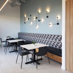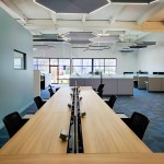 With the lighting as the forefront display, the rest of the space needed to support and enhance the star of the show. The office reflects a local Pacific Northwest color palette and textures, with a modern edge. Geometric patterns and sophisticated colors are applied through finishes such as carpet, fabric, tile, wall coverings, and ceiling treatments.