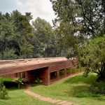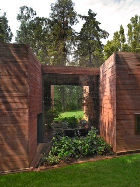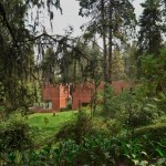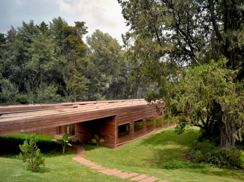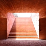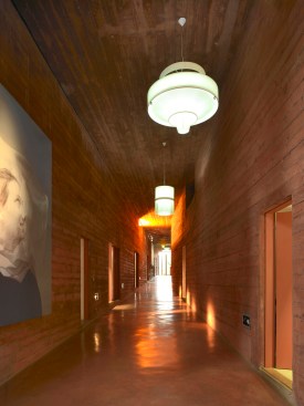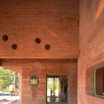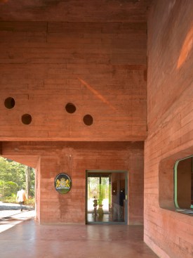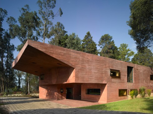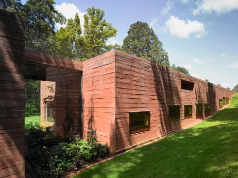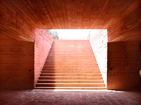 The facades are made of untreated concrete in the same red tint as the earth.