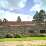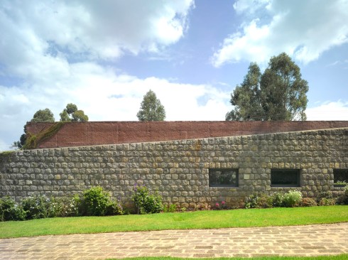 Three concealed staircases connect the floors internally. The elongated volume evokes a traditional Ethiopian rock-cut church sculpted from the landscape.
