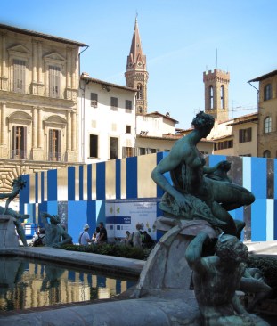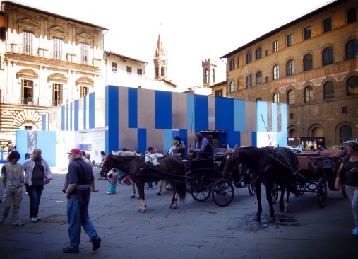The Studio Lauria was in charge of the project to build three temporary pavilions in the Piazza della Signoria and to realize a scenic lighting of the Loggia dei Lanzi.