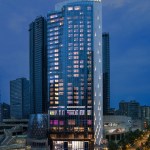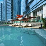 The St. Regis Chengdu, on the other hand, has an elegant façade design. Warm colour toned materials such as Brazilian granite, timber-patterned architectural features and pearl white window mullions are used to echo the warm and welcoming hospitality of The St. Regis. The curtain wall system uses glass and granite as two key materials – the unitised glass curtain wall expresses movement and verticality, while the granite cladding shows pride and firmness. The combination of these two elements transforms the hotel tower into an architectural metaphor of mountain and waterfall.