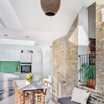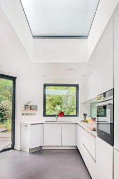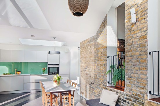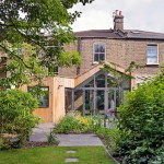 The flat itself was very dark, as in addition to being north facing, it had a very large old and poorly built conservatory which blocked further light into the living area. Due to being freezing in winter and overheated in summer the conservatory itself was not in use at all. Planning presented the first challenge in this project. We designed a very large and uniquely shaped rear extension to the flat, and completely removed the rear wall of the flat to the new extension. Following extensive negotiation, we obtained planning permission for the scheme as designed. Eventually our clients decided to proceed with more modest interior alteration while keeping the exterior proposal as designed. They wanted us to find a way of keeping more of the existing elements of the house and not opening up the spaces completely. This presented a new challenge, as we all wanted wanted to keep the exterior as in the existing planning permission while re designing the interior to fit. This was found to be a very interesting and productive process resulting in an exciting and unique design solution. The new extension was redesigned to now accommodate Kitchen and dining area with a small sitting area around it facing the garden. In order to keep and respect the original structure and features as much as possible, the original back façade openings were kept , creating internal internal balcony, overlooking the dinning area and garden beyond it, while the living room with its original features was left as existing keeping a cozy and more traditional space.