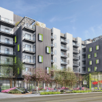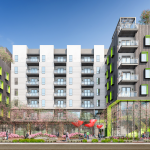 The building is amenity-rich and geared towards urban lifestyle: bike parking and cafe, four roof-decks, pool & spa, dog wash & run, boxing area, fitness room, yoga center, Parcel Pending lockers, and a business center. The 7-story project will be completed in Fall 2019.