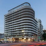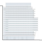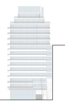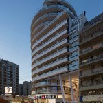 The building consists of 15 floors and 2 sub floors. With a base of eight business premises, an immediate level with common studies and services that open to the green lung. The upper floors from the 2nd to the 14th are intended for residences of 1, 2 and 3 rooms, while on the terrace there is an upper pool and solarium garden and grills. In total there are 160 functional units and 76 garages, located in 2 subsoils together with storage and technical areas.