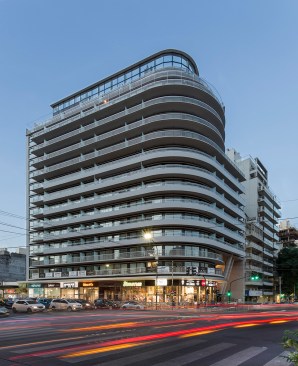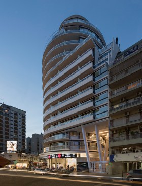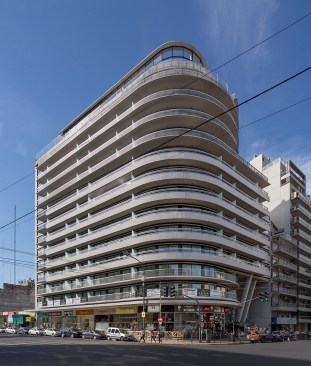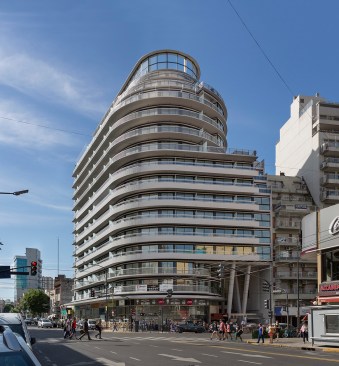 The architecture of this building poses a set of horizontal lines of longitudinal balconies that shape the presence of the corner as a landmark on the one hand, with its representative curved shape and on the other, when rising at the top over the lines that give continuity to the facade over Olazabal. A kind of significant bow is formed for the neighborhood.