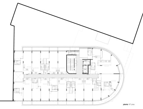 From the aesthetic point of view, the building takes the composition of horizontal lines of the balconies and the curve as main themes, but at the same time variations in the design of balconies and cornices are used to lighten the built mass and mark differences in height They provide scale with respect to your environment.