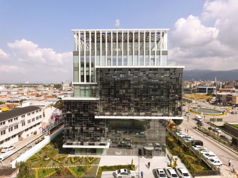 The EWE & Bursagaz Head Office building is the headquarters of a local natural gas distributor located in Bursa, one of the biggest cities of Turkey. The building has a 820 m² of plot area and approximately 9500 m ² of building area. It consists of 7 floors and 3 basement floors. The offices are officially opened to use in May 2016. The architectural design is based on integrating renewable energy systems to architecture meeting the expectance of a prestigious headquarters building of the client. The project is also based on building up a positive relationship between these energy saving systems and office life.
