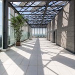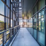 In this project, it was very important to create a high quality work environment so we challenged the traditional double-skin facade section of the building in order to also offer shaded balconies that surround the office space. The one outer skin is arranged using modular BIPV panels, while the other using painted glass shadings. When these two come together, they account for an irregular rhythm of shadows on the interior of the building and create a light controlled comfortable office spaces.