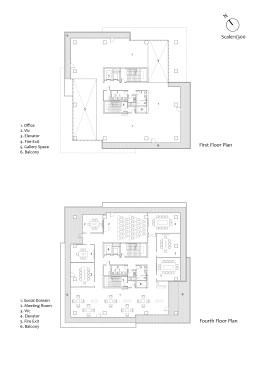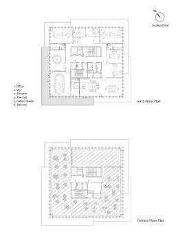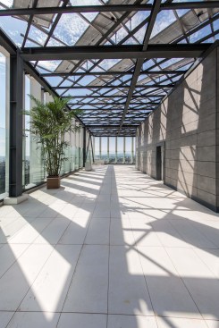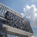 The design itself is a composition of different prisms with voids and transparent surfaces coming together creating the impression of one big exploded cube. Each prismatic volume ends with an open terrace that serves the office workers. The terraced roof is covered with solar energy panels which also serve as shading elements creating a sophisticated semi-open space.