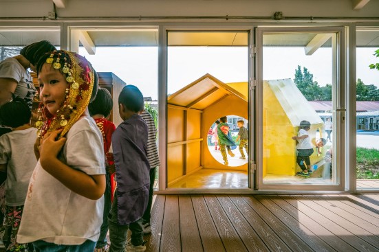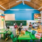 The Sunshine Kindergarten includes areas for large and small performances, a range of playscapes, as well as classrooms set up for traditional teaching. The design incorporates ways to connect students to the real world through experience-based learning. The school has indoor and outdoor gardens for students to learn from nature. Two STEAM classrooms are designed with hands-on activities in mind. There are kitchen and woodworking facilities and spaces that support activities for art, engineering, and astronomy. A mobile STEAM corner allows teachers the ability to bring such activities to different places in the school.