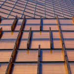 The result is a facade that outperforms any of the surrounding gray glass buildings and looks nothing like them. It is clear and transparent and the natural color of the wood glows in the sun.