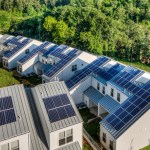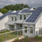 The buildings are clad with white clapboard siding and incorporate energy efficient windows and doors. The roofs are Kynar coated standing seam metal roofs and most south facing roofs incorporate photovoltaic panels, which provide 10% of the projects total estimated energy demand. The buildings have been organized on the site to make the greatest use of passive solar heating and cooling and to maximize open space. Pervious concrete and pervious paver assemblies are used to manage stormwater on the site and rainwater that is collected off the building roofs is diverted to an underground cistern and used for irrigation. The landscaping incorporates non-invasive, native species. Three all-weather pathways are provided to better connect the project to the surrounding pedestrian circulation system and adjacent amenities.