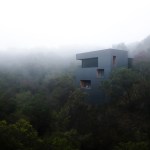 Entered via a bridge to the uppermost of three minimalist levels, the residence’s top floor offers a two-car garage, a living room, and a dining room. Two bedrooms rest on the middle floor while two more bedrooms and a family room are carved into the lowest level, all studded with operable windows that allow for ample cross ventilation and breathtaking vistas of the surrounding greenery.