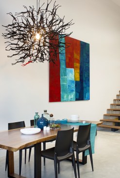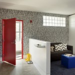 The addition of interior transom windows readily admits ‘borrowed’ daylight into previously dark interior spaces, including the nursery, entry, and guest bedroom. The entry area became an ‘urban mudroom’ with ample storage and a small clean workspace that can also serve as an additional sleeping area, while the nursery playfully incorporates framed interior windows to the living space. The dark hardwood floors on the main level were removed and the concrete below was polished, creating a durable, low-maintenance finish that helps disperse light in the space.