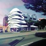 Tighe is testing a new building technique for this façade element: a fiberglass-reinforced polypropylene panel that will be manufactured and then cut into ribbon panels in a shop. “By using this new material, we’re hoping to get bold results within our price point,” he says, which is about $200 per square foot.