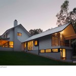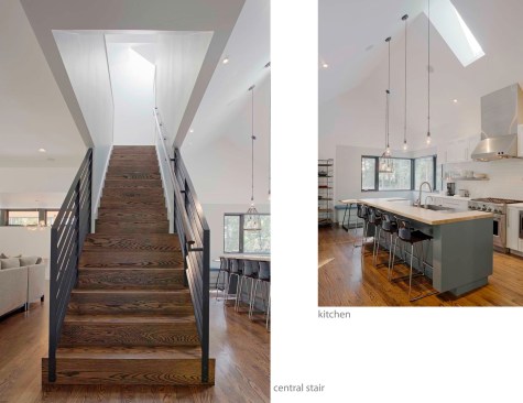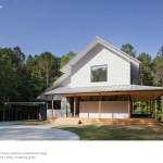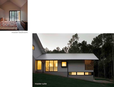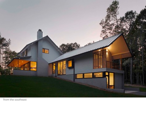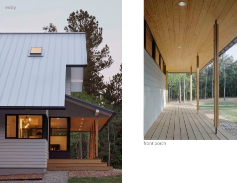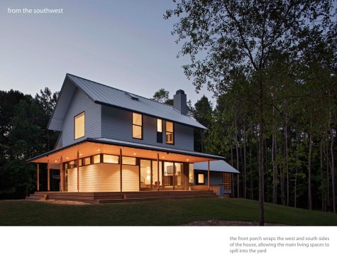 The front of the house presents a traditional image and is defined by a deep wrapping porch. The porch wraps around the western and southern elevations, allowing the main living spaces to spill into the yard. The south side opens to a private yard carved from the trees, and affords an understanding of how the house cascades down the slope.