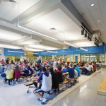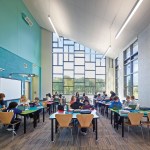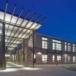 The design was optimized to support the mission of the County’s Rustic Roads Program to preserve exceptional rustic roads exemplifying the rural and agricultural character of the area. William H. Farquhar Middle School made the land the key sustainable feature – the building nestles, steps, and bridges into and along the contours of the site’s existing slopes. Rains are naturally slowed and treated on site with bioretention facilities and the wet, clay soils are redeemed as a conductive heating and cooling source in the school’s geothermal system. There are vegetated roofs, outdoor learning courtyards and commons, and vistas celebrating the building’s relationship with the surrounding, natural landscape.