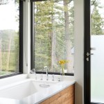 The goal was to design an intimate home, just the right size for their living style. The open, sweeping shed roof and windows that look out into the trees and the mountains beyond give the feeling of a much larger space.