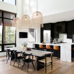 While the home incorporates nods to a Montana aesthetic, such as rough reclaimed wood beams, it is very modern. A simple material palette, white oak floors, and tall ceilings anchored by a floor-to-ceiling fireplace create an open, light-filled space.