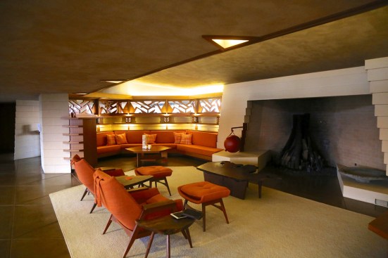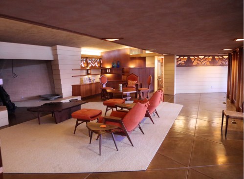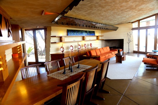 The restoration architect studied the original plans, historic and family photographs, and conferred with the Frank Lloyd Wright Foundation, the Frank Lloyd Wright Archives, and members of the Taliesin Fellowship to insure vital colors, finishes and details. Lynn Fawcett Whiting, the owner’s daughter, Frank Lloyd Wright’s grandson, architect Eric Lloyd Wright and Frank Lloyd Wright’s interior designer for the home, Cornelia Brierley were also consulted throughout. Additionally, the restoration closely followed the U.S. Secretary of the Interior Guidelines and Standards for historic preservation.
