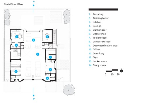 The architects asked themselves: How do you build a better firehouse? Gang and her team had done extensive research into, and designed, civic buildings, but they had never designed a firehouse before. They began the design process with lengthy interviews with the firefighters themselves—the architects even went out on an emergency call. “They were so anxious to let us know what they do,” Gang says.