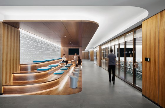 The Switzer Group, a nationally ranked interior architecture firm steeped in strategic space planning and design for media, corporate, technology, and academic sectors, is pleased to unveil its design for Federal Home Loan Bank of New York’s recently opened Jersey City office, located at 70 Hudson Street. The Switzer Group was tasked with transforming the nearly 52,000-square-foot office space into a state-of-the-art technology hub with a highly flexible, collaborative workspace and upscale amenities such as an employee activity center and private gym.
