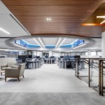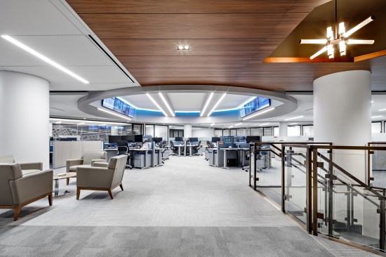 Spector Group’s design for the expanded 64,200-square-foot space accentuates the shape of the building, specifically highlighting the trading area and formal conference rooms. The trading area has been brought to the front of the house creating an impactful impression upon arriving to the space, a unique design concept for the finance industry. The trading area features a circular ceiling design that incorporates technology and evokes a sense of energy and activity.